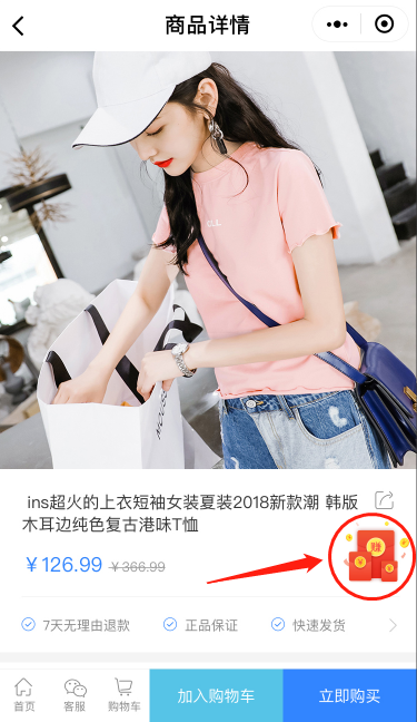 b.在參與推廣活動(dòng)的產(chǎn)品的產(chǎn)品詳情頁(yè)點(diǎn)擊“賺”的標(biāo)識(shí),將產(chǎn)品分享給好友或朋友圈。