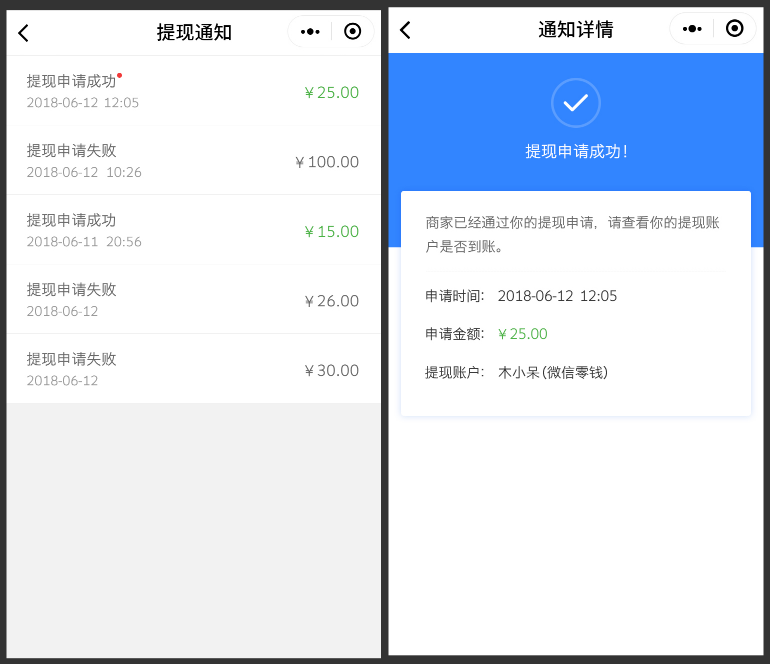b.“提現(xiàn)設(shè)置”分為2個(gè)部分,分別為“結(jié)算方式”和“單筆提現(xiàn)金額”。